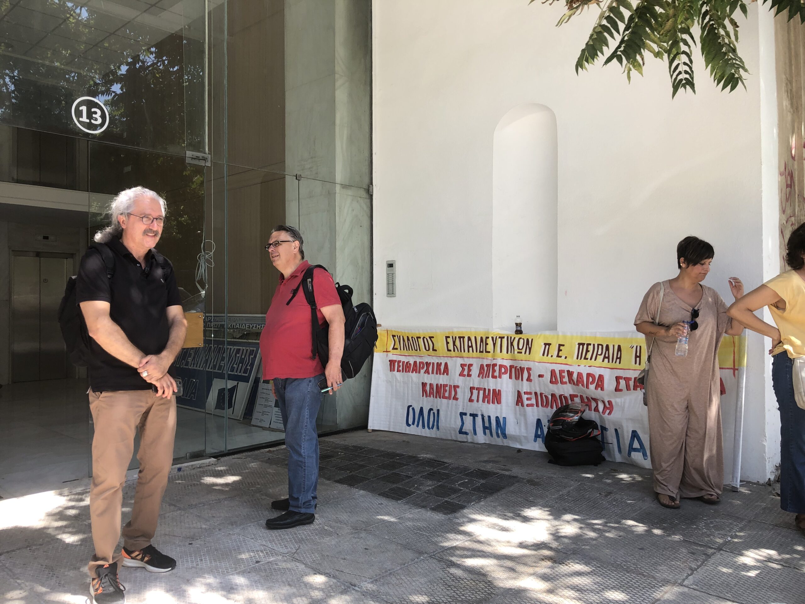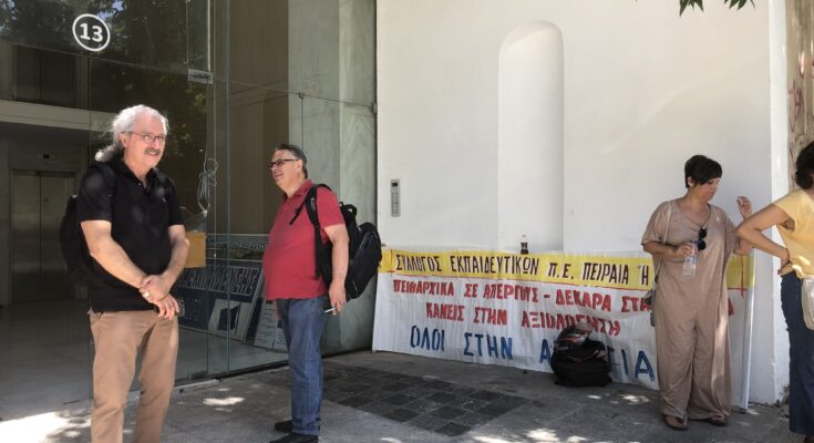 Την Τρίτη 16 Σεπτεμβρίου πραγματοποιήθηκε παράσταση διαμαρτυρίας των εκπροσώπων των Συλλόγων Πρωτοβάθμιας Εκπαίδευσης: Πειραιά «Η Πρόοδος», Νίκαιας-Πειραιά, Κερατσινίου-Περάματος «Ν. Πλουμπίδης», Κορυδαλλού-Αγίας Βαρβάρας, A΄ Πειραιά «Ρ. Φεραίος», Αργοσαρωνικού και Σαλαμίνας στη Δ/νση Π.Ε. Πειραιά και συνάντηση με τη Διευθύντρια Εκπαίδευσης.