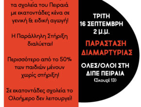 Παράσταση διαμαρτυρίας στην Δ/νση Π.Ε. Πειραιά, Τρίτη 16/9 στις 2 μ.μ. Διαβάστε περισσότερα